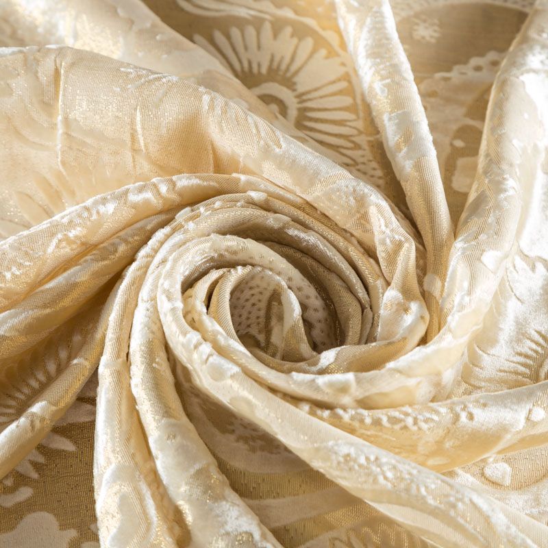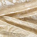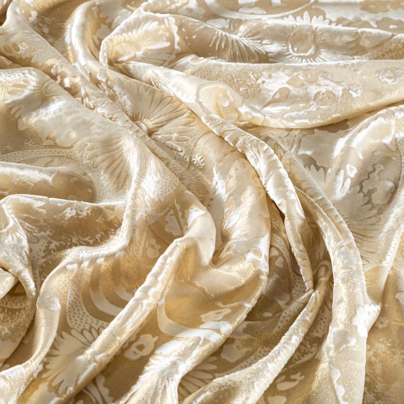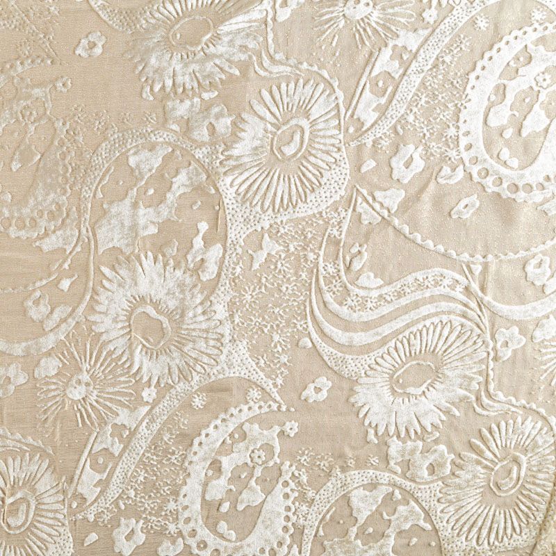 Итальянская шелковая красивая и эффектная ткань с гладким, немного глянцевым ворсовым узором на матовой основе кремового оттенка. Панбархат тонкий, но объемный за счет рельефности рисунка, при драпировке ложится мягкими струящимися складками. Отлично подойдет для пошива блузы, туники, платья, костюма в пижамном стиле.