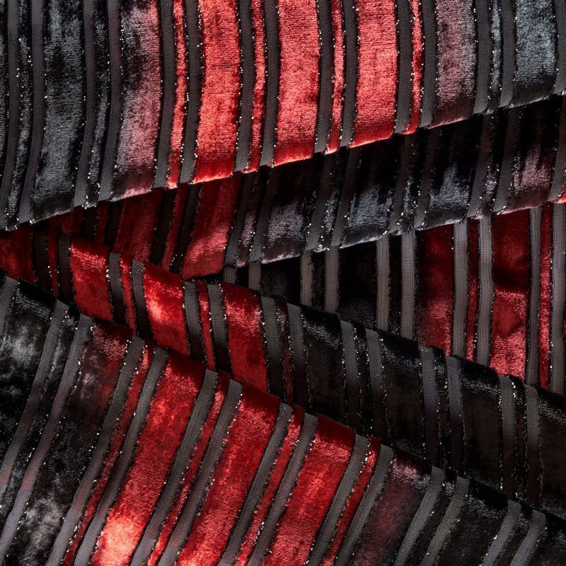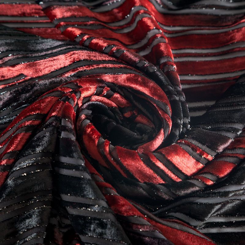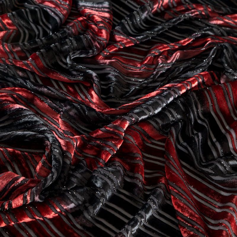 Итальянская шелковая красивая и эффектная ткань с гладким, немного глянцевым ворсовым узором на матовой шифоновой основе черного цвета. Панбархат тонкий, но объемный за счет рельефности рисунка, при драпировке ложится мягкими струящимися складками. Отлично подойдет для пошива блузы, туники, платья, костюма в пижамном стиле.