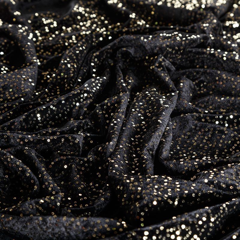 Пайетки на бархате 055-05746 черный/золото