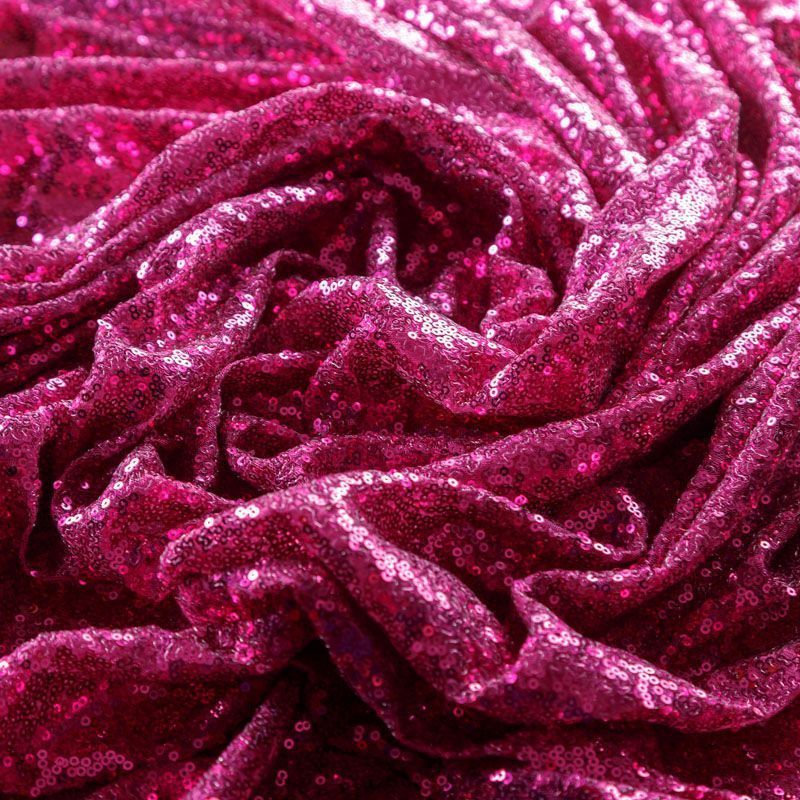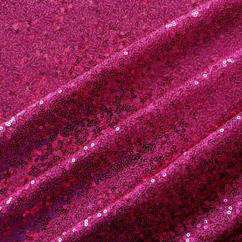 Блестящие пайетки в ярком розовом оттенке. Мелкие, размером около 3 мм, расположены в хаотичном порядке. Основа - мягкая и эластичная сетка. Ткань полупрозрачная, может потребоваться подклад. Подойдет для вечернего, коктейльного платья, юбки, нарядных детских изделий, танцевальных и сценических костюмов.