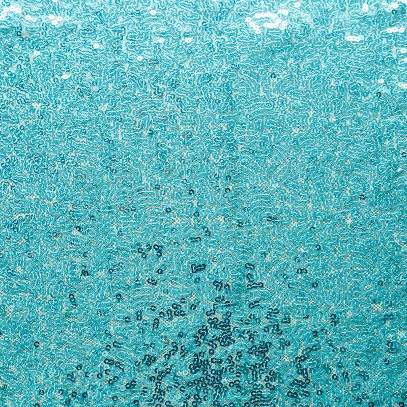 Блестящие пайетки в бирюзовом оттенке. Мелкие, размером около 3 мм, расположены в хаотичном порядке. Основа - мягкая и эластичная сетка.  Ткань полупрозрачная, может потребоваться подклад. Подойдет для вечернего, коктейльного платья, юбки, нарядных детских изделий, танцевальных и сценических костюмов.