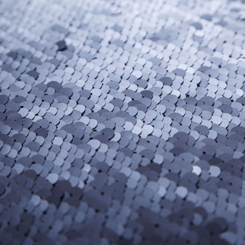 Тонкая мягкая эластичная сетка черного цвета по всей поверхности расшита матовыми пайетками по типу чешуи. Ткань очень хорошо драпируется, красиво переливается, пластичная и эластичная и в длину, и в ширину, благодаря чему изделия получаются комфортными и отлично сидят по фигуре. Пайетки — идеальный материал для праздников и вечеринок. Из них получится эффектное платье, жакет, боди, топ, туника, юбка или комбинезон.