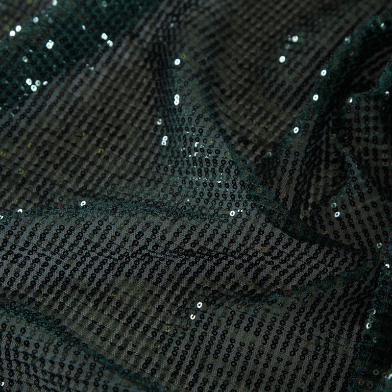 Пайетки на сетке плиссе 055-16382 бутылочный зеленый в Салехарде