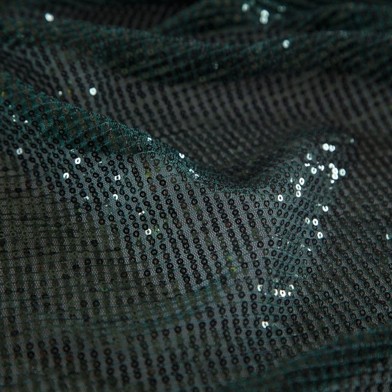 Пайетки на сетке плиссе 055-16382 бутылочный зеленый