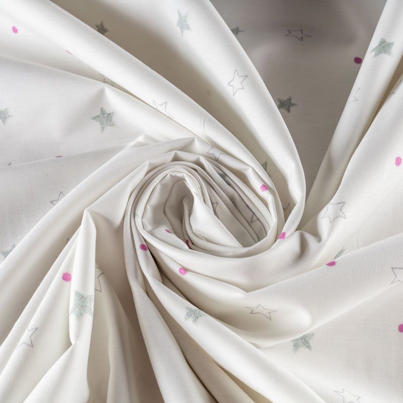 Тонкая, плотная хлобчатобумажная ткань полотняного переплетения. При изготовлении используются длинноволокнистые сорта хлопка, за счет чего перкаль имеет длительный срок использования и прекрасно стирается. Поверхность шелковистая, мягкая, нежная и гладкая на ощупь. Подойдет для пошива домашней одежды, постельного и столового белья, детских пеленок, бортиков для кроватки.