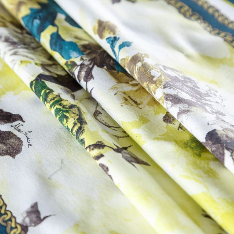 Эффектный и стильный платок с крупными желтыми розами на белом фоне с кантами из цепочек. Платок выполнен из натурального итальянского хлопка. Такой аксессуар добавит свежести и весеннего настроения в Ваш образ.