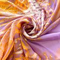 Изящный, нежный и необыкновенный шарф из итальянского шелкового шифона с крупным анималистичным принтом "зебра" в ярких оранжевых и фиолетовых тонах на молочном фоне. Невесомый, воздушный, мягкий и пластичный, летящий, поверхность с красивым матовым блеском. Будет отличным стильным аксессуаром к платью, костюму, пальто, жакету.