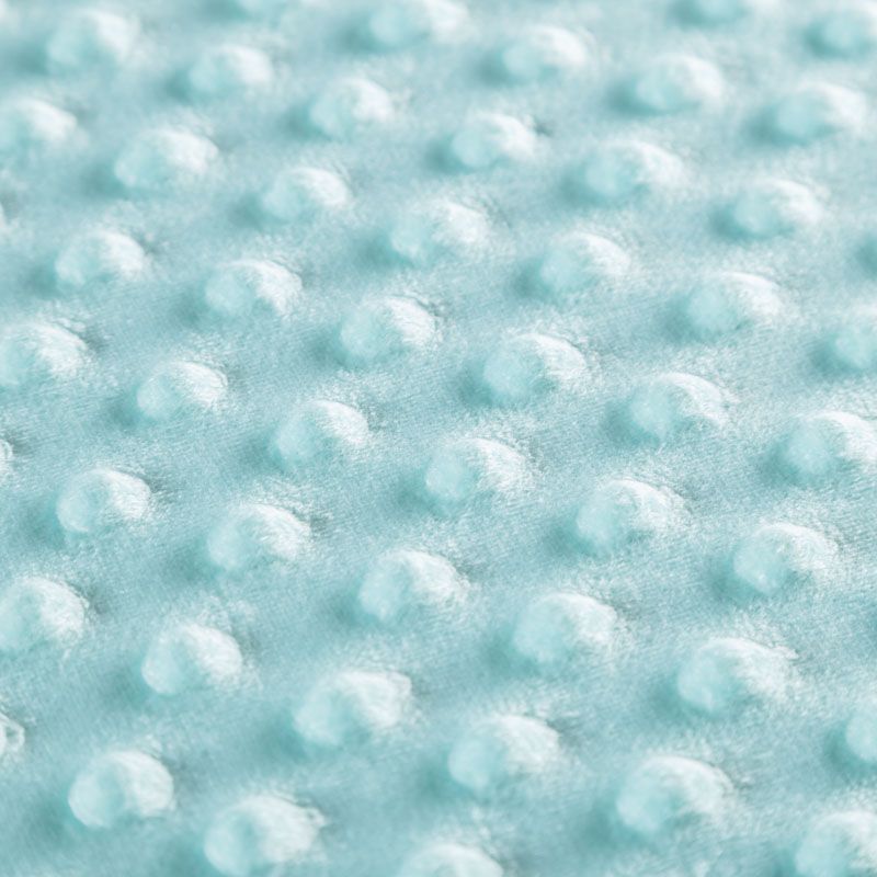 Мягкое, нежное, приятное на ощупь, с гладкой текстурой, красивым блестящим эффектом. Фактура – пузырьки. На лицевой стороне мягкий ворс 1 мм. Изнаночная сторона — гладкое трикотажное полотно без ворса. Используется для пошива покрывал, пледов, одеял, бортиков в кроватку, конвертов для новорождённых, мягких игрушек, комбинезонов, пижам, домашней одежды, лежанок для домашних питомцев.