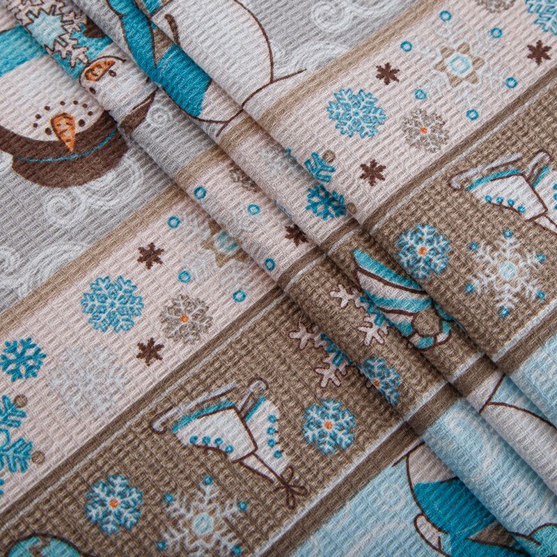 Полотно вафельное 007-15306 серо-голубой принтованный