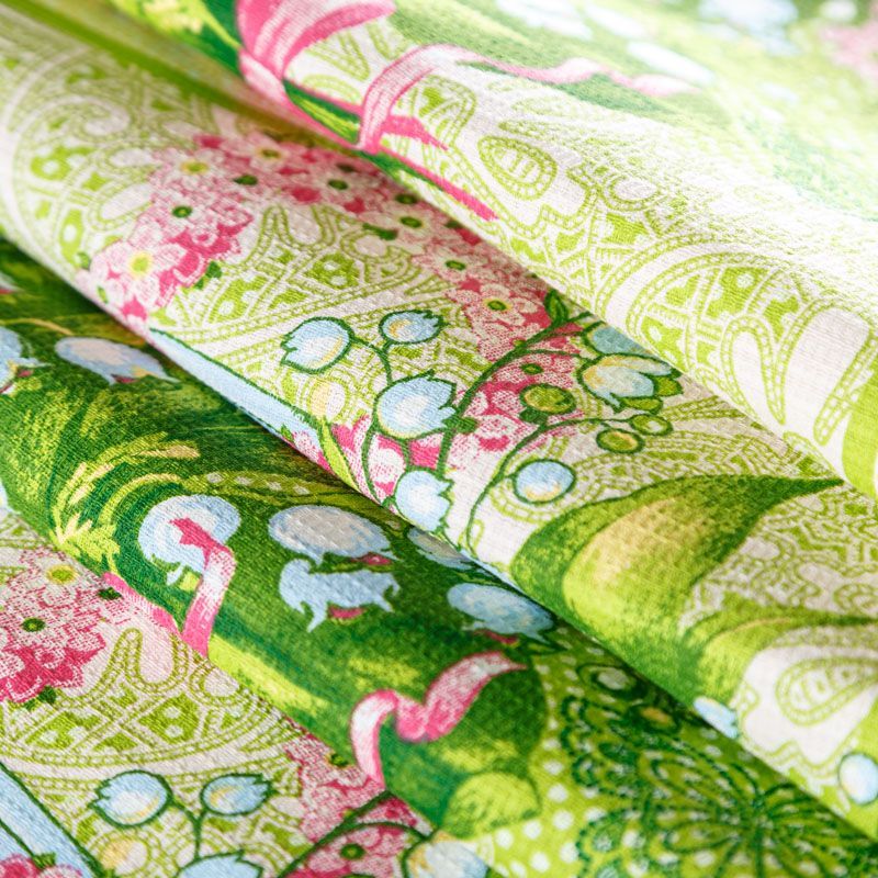 Качественная натуральная хлопчатобумажная ткань, обладающая высокой гигроскопичностью, с весенним принтом. Универсальный материал, из которого  шьют кухонные полотенца, скатерти, прихватки, салфетки.