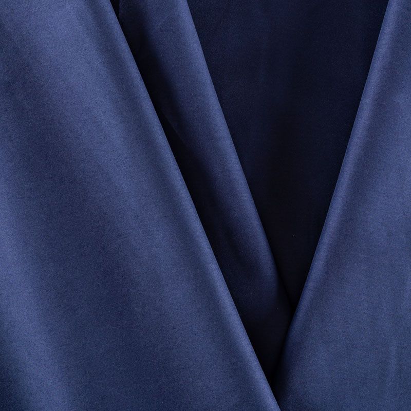 Однотонный плательно-рубашечный хлопковый поплин синего оттенка. Ткань лёгкая, слегка прозрачная, поверхность матовая, гладкая, приятная к телу, хорошо драпируется, тянется за счет эластана в составе. Прекрасно подойдет блузы, платья-рубашки, летнего сарафана, туники.