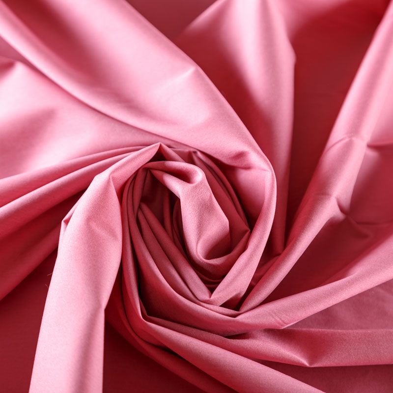 Однотонный плательно-рубашечный смесовый поплин темно-розового оттенка. Ткань лёгкая, слегка прозрачная, поверхность матовая, гладкая, приятная к телу, хорошо драпируется, тянется за счет эластана в составе. Прекрасно подойдет блузы, платья-рубашки, летнего сарафана, туники.