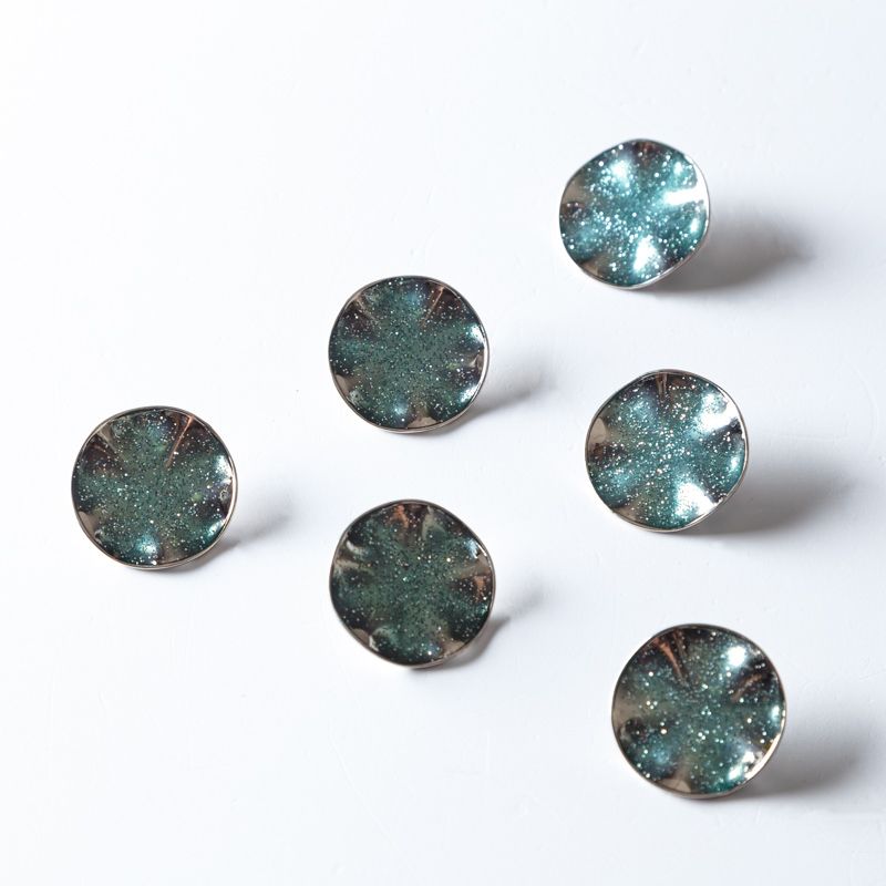 Пуговица на ножке 30 мм металл 493742 серебро/зеленый