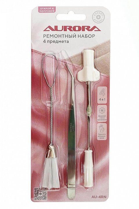 Для выполнения работ по ремонту и профилактическому обслуживанию швейной техники. В состав набора входят: пинцет длиной 18 см; двухсторонняя щетка; отвертка длиной 14 см и диаметром 2,8 мм; отвертка длиной 14 см и диаметром 4,5 мм.