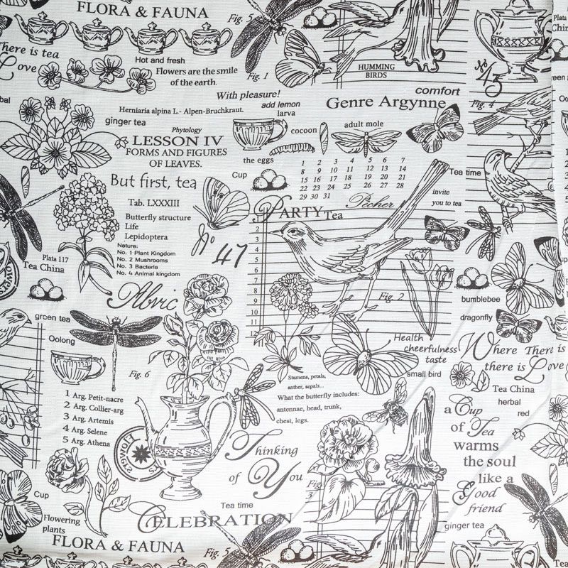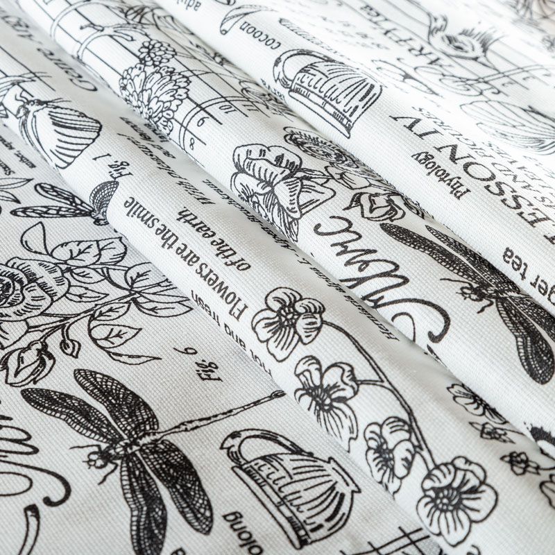 Ткань рогожка с монохромным принтом на белом фоне. Это плотная хлопковая ткань с переплетением нитей две на две, благодаря этому создаётся структурное полотно отлично подходящее для пошива скатертей и салфеток, фартуков, сценических костюмов. Набирается объемом.