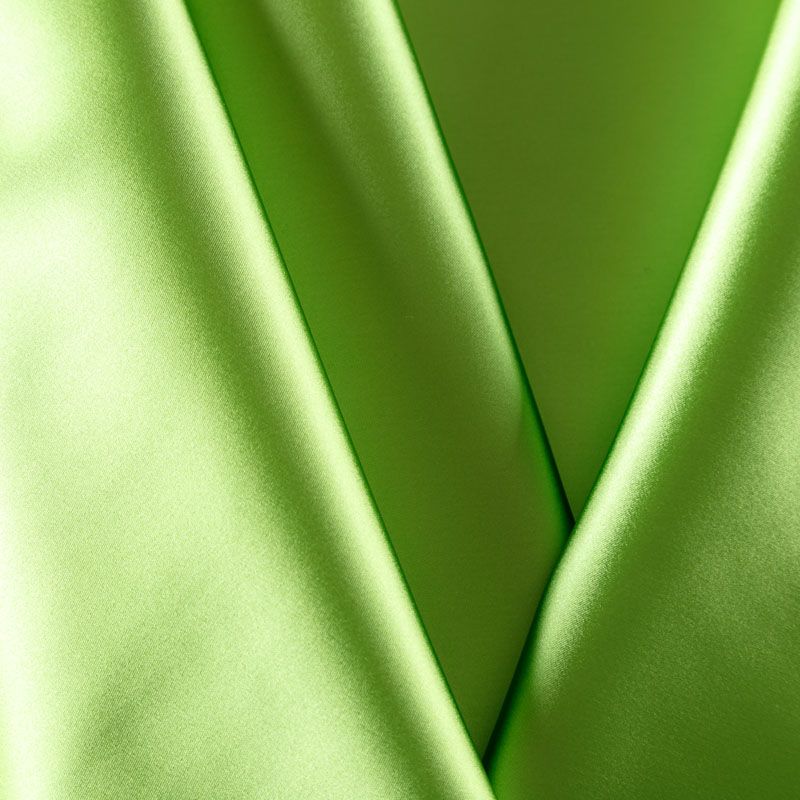 Итальянский костюмно-плательный сатин зеленого оттенка. Ткань плотная, но пластичная, хорошо держит форму и отлично тянется, собирается в красивые складки и драпировки. Почти не мнется, очень удобный и практичный. Блеск умеренный, смотрится дорого, благородно. Подойдет для пошива прямых силуэтов-футляров, приталенных платьев с пышной юбкой и крупными драпировками, изделий с заложенными складками, нарядных изделий, вечерних костюмов, летнего пальто, юбки, для изготовления корсетов.