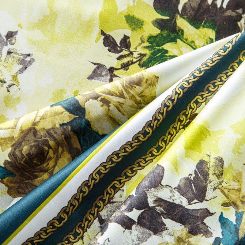 Сатин стрейч 001-07887 желтый принтованный в Салехарде