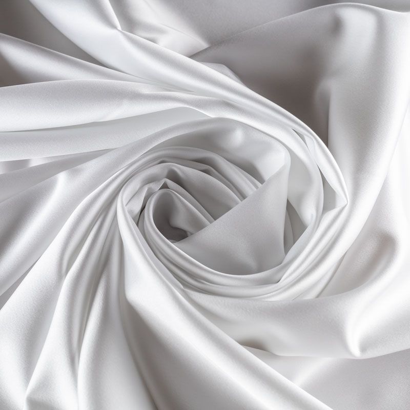 Материал пластичный, хорошо драпируется, эластичный, держит форму, верхняя поверхность имеет благородный сатиновый блеск. Роскошный сатин идеален для пошива нарядных, свадебных  и повседневных платьев, костюмов, брюк, юбок, бомберов.