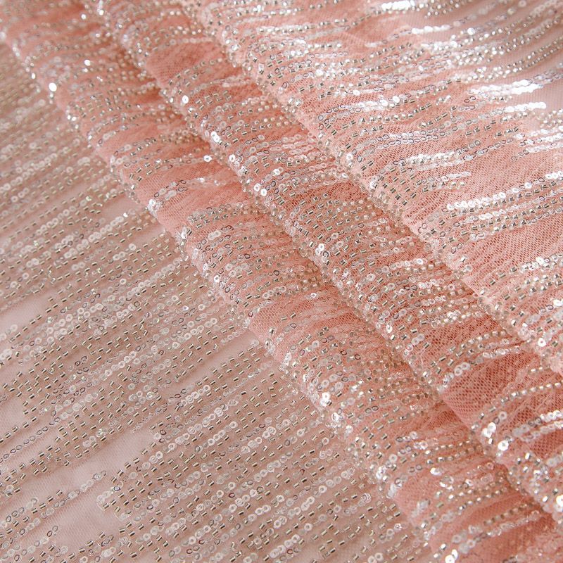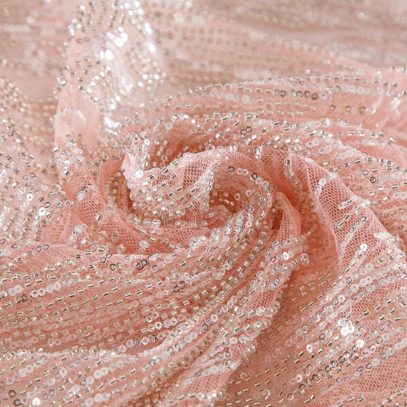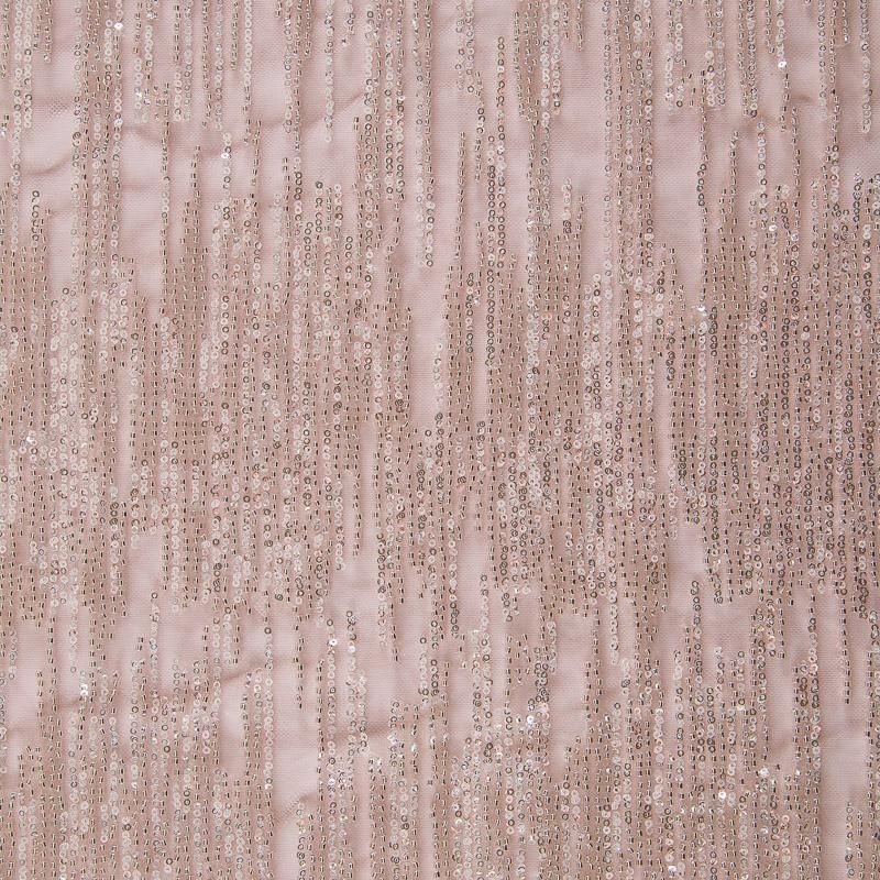 Мягкая сетка, густо расшитая пайетками и стеклярусом в тон полотна. Узор напоминает северное сияние, расположен по ширине полотна. Подходит для пошива нарядной одежды, платья, юбки, комбинезона. Требуется подклад, материал набирается объемом.