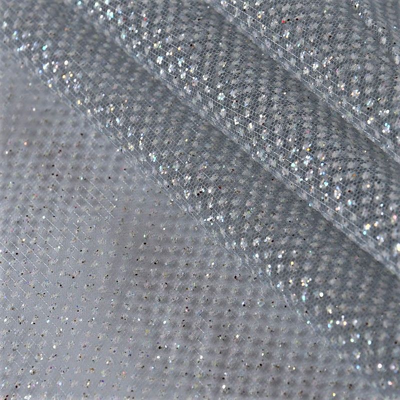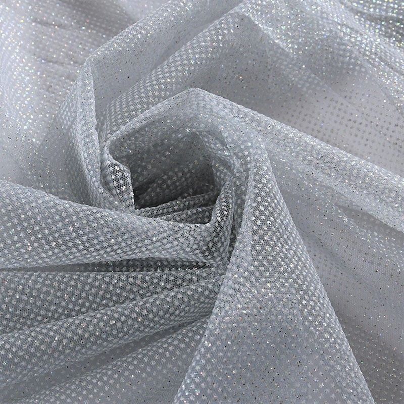 Рельефный прозрачный материал с сетчатой структурой. Поверхность полотна с металлизорованным глиттером, который придает материалу блеск и мерцание. Полотно жесткое, не тянется, отлично держит форму. Сетки нашли свое применение в процессе пошива и последующего декора вечерних нарядов, свадебных платьев, спортивной одежды, театральных костюмов.