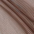 Рельефный полупрозрачный материал с сетчатой структурой. Поверхность полотна с металлизированным напылением, которое придает материалу легкий блеск и мерцание. Полотно мягкое, растяжимое во всех направлениях. Сетки нашли свое применение в процессе пошива и последующего декора вечерних нарядов, свадебных платьев, спортивной одежды, театральных костюмов.