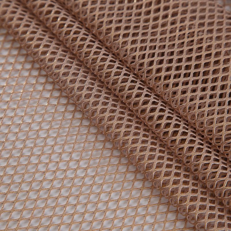 Рельефный полупрозрачный материал с сетчатой структурой. Поверхность полотна с металлизированным напылением, которое придает материалу легкий блеск и мерцание. Полотно мягкое, растяжимое во всех направлениях. Сетки нашли свое применение в процессе пошива и последующего декора вечерних нарядов, свадебных платьев, спортивной одежды, театральных костюмов.
