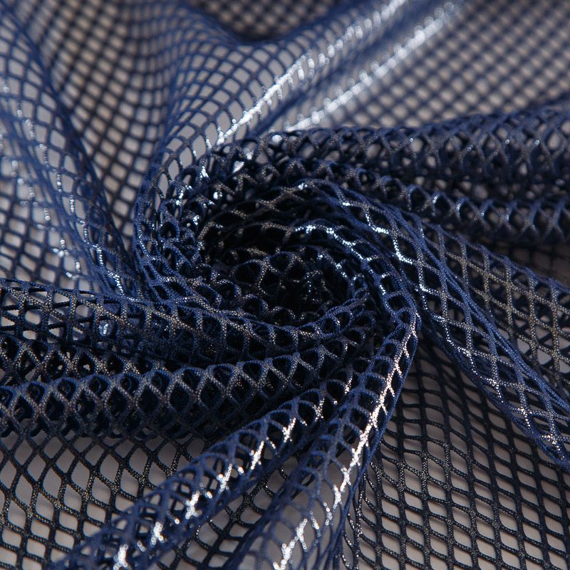 Рельефный полупрозрачный материал с сетчатой структурой. Поверхность полотна с металлизированным напылением, которое придает материалу легкий блеск и мерцание. Полотно мягкое, растяжимое во всех направлениях. Сетки нашли свое применение в процессе пошива и последующего декора вечерних нарядов, свадебных платьев, спортивной одежды, театральных костюмов.