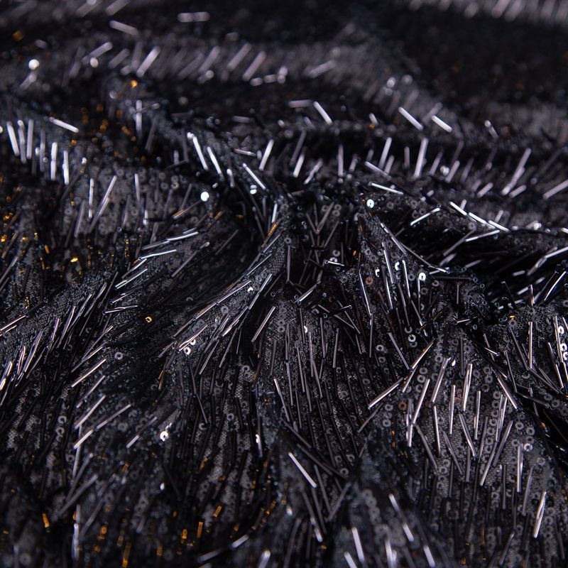 Сетка с пайетками и стеклярусом 050-19865 черный