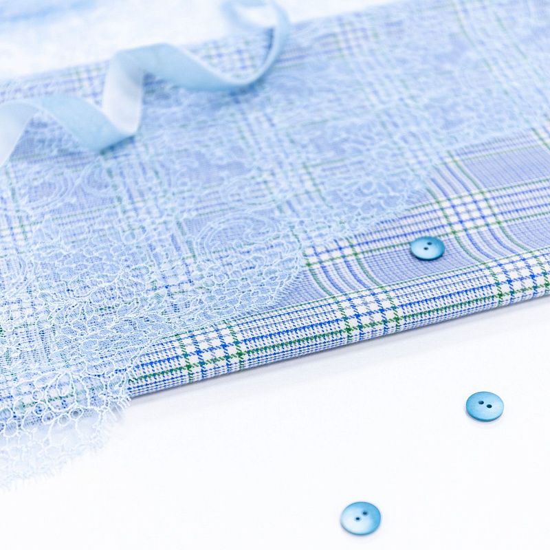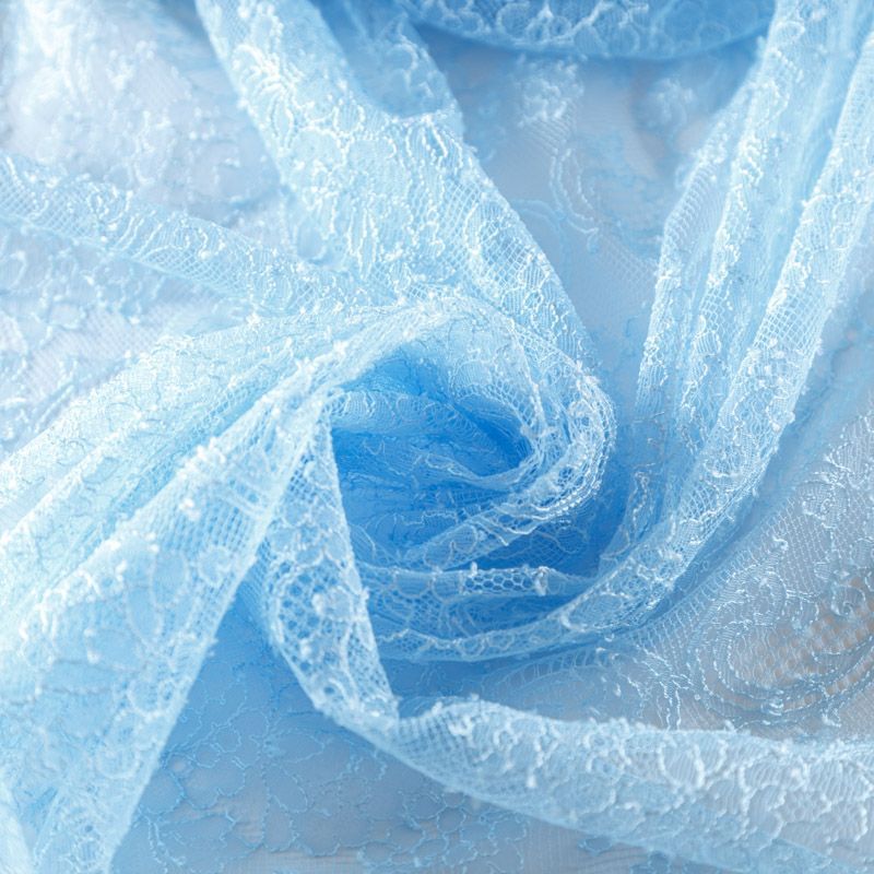 Французское шантильи разбеленного голубого оттенка имеет тончайшее плетение волокон и состоит из нежнейшего кружева, которое используется для пошива свадебных нарядов, праздничных платьев. Вставки из кружева украсят любой офисный костюм, повседневное платье, юбку, блузу. Обе кромки кружева украшены фигурными фестонами.