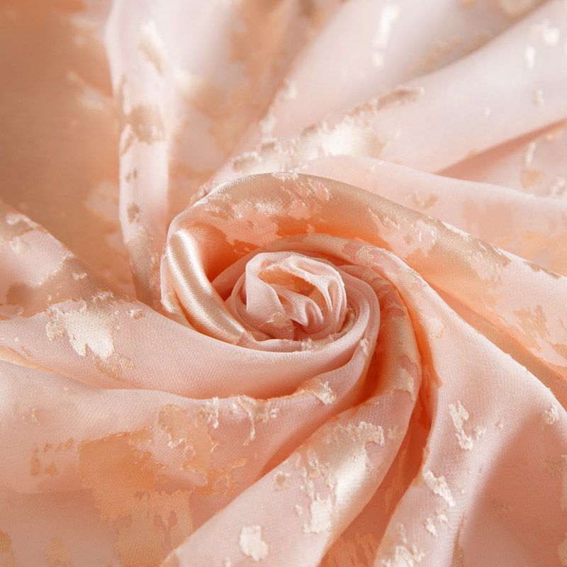 Итальянская полупрозрачная ткань из натурального шелка, созданная в технике "деворе" и олицетворяющая атласный мотив в персиковых оттенках на шифоне от бренда YSL. Материя мягкая и приятная на ощупь, пластично и воздушно драпируется - подойдет для вечерне-коктейльного платья или блузы.