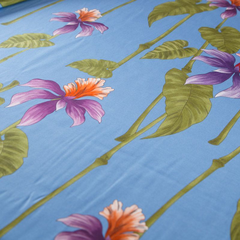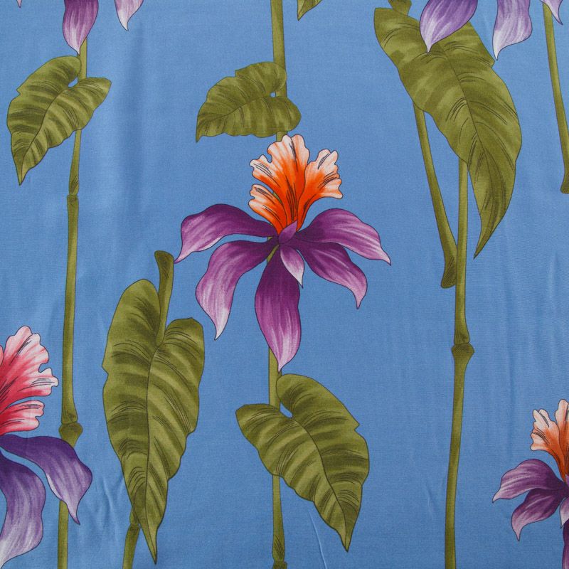 Итальянский шелк-батист в припыленном голубом оттенке с активным цветочным принтом. Ткань легкая, держит форму, отлично драпируется, поверхность шелковистая, матовая. Отличный вариант для пошива летнего гарбероба: платья, сарафана, рубашки, туники.