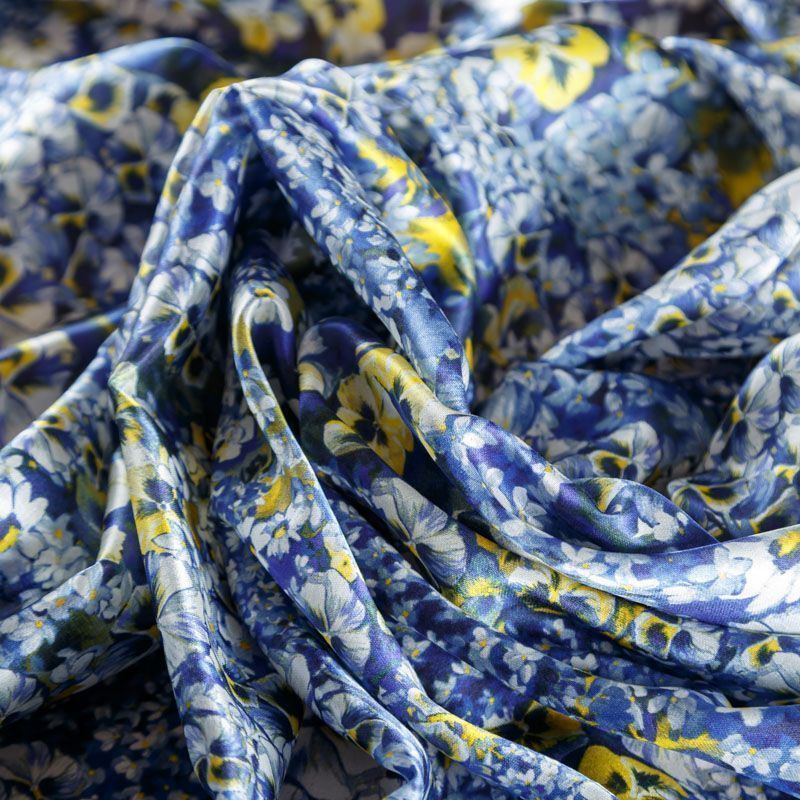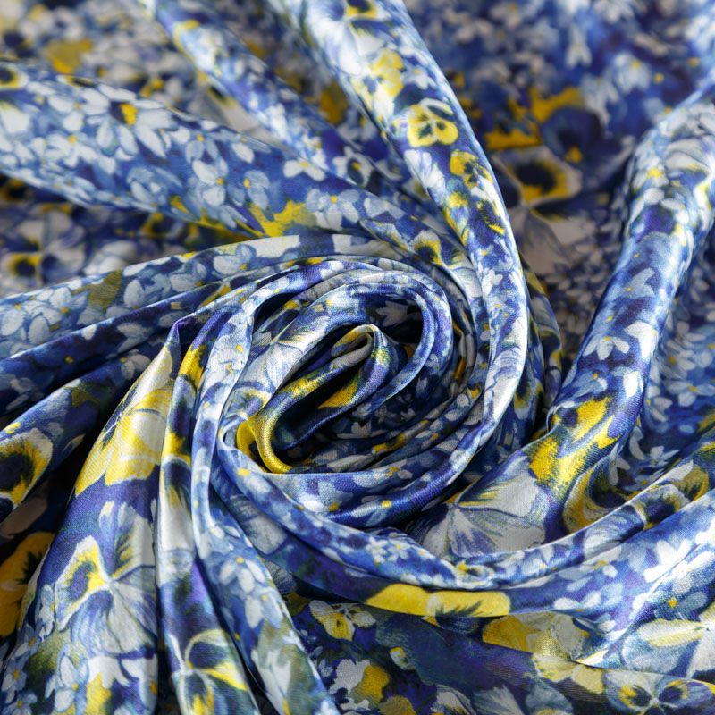 Шелк-батист натуральный К18-190 синий принтованный в Салехарде