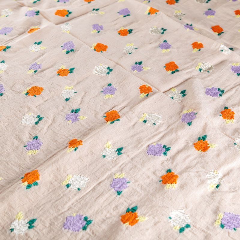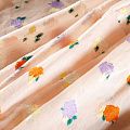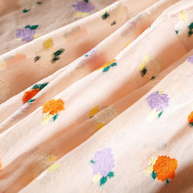 Очень красивый и нежный шелковый батист с цветочной вышивкой. Ткань тонкая, мягкая и легкая, но достаточно плотная, не очень прозрачная, ее прикосновения к телу очень приятны, в изделии из него будет комфортно как в жару, так и в прохладную погоду. Лицевая сторона гладкая, с легким сатиновым блеском. Прекрасно подойдет для пошива летнего сарафана, платья, блузки, топа, туники, костюма в пижамном стиле, широких брюк или юбки.