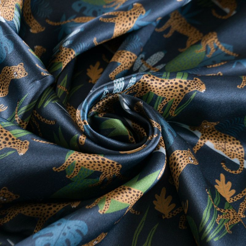 Шелк натуральный 064-12193 темно-синий принтованный