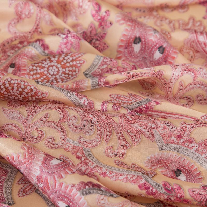 Шелк натуральный Etro 064-19247 персиковый принтованный в Салехарде