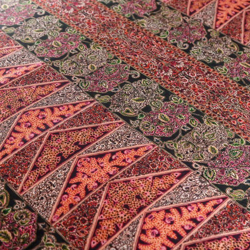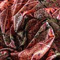 Итальянский атласный шелк с богатым орнаментом в красно-коралловых оттенках.  Ткань тонкая, не просвечивает, отлично драпируется, легкая и струящаяся, тянется за счет эластана в составе. Идеально подойдет для пошива платьев и сарафанов расклешенных моделей, с воланами, летящих юбок, топов, блузки, костюма в пижамном стиле.