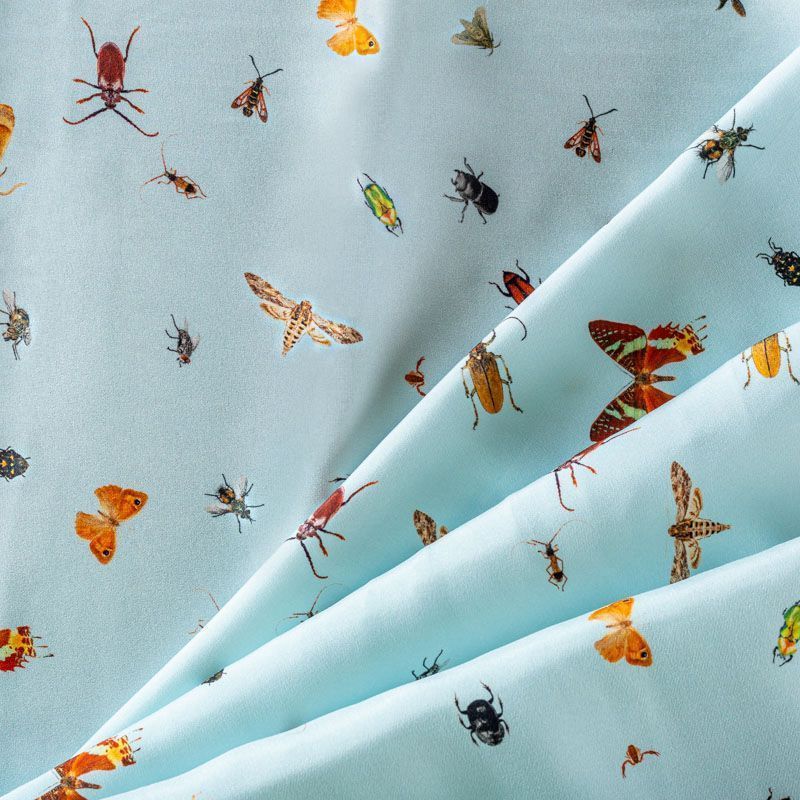 Итальянский шелк с матовой лицевой поверхностью и атласной изнанкой с анималистическим принтом на светло-голубом фоне, тонкий, слегка прозрачный, отлично драпируется, не много тянется за счет эластана в составе, легкий и струящийся. Идеально подойдет для пошива платьев и сарафанов расклешенных моделей, с воланами, летящих юбок, топов, блузки, костюма в пижамном стиле.