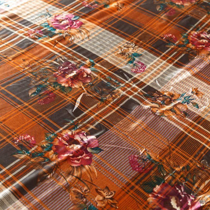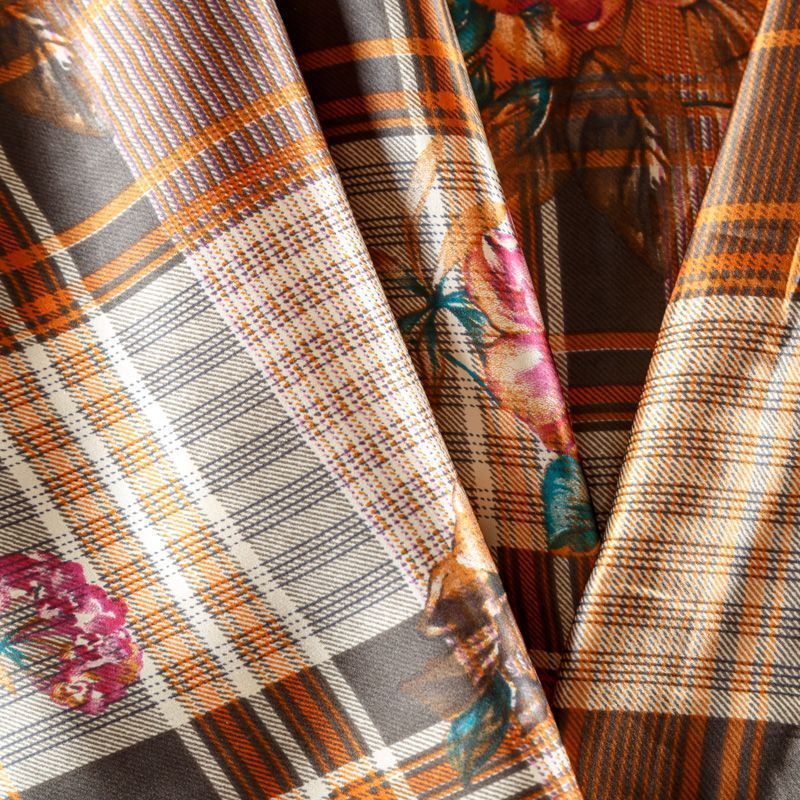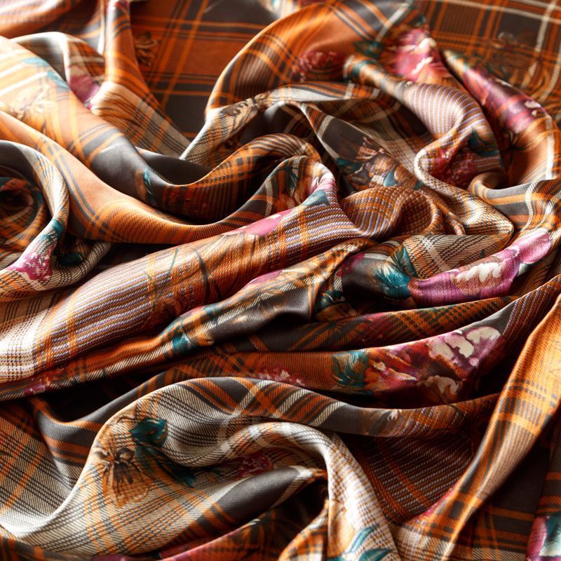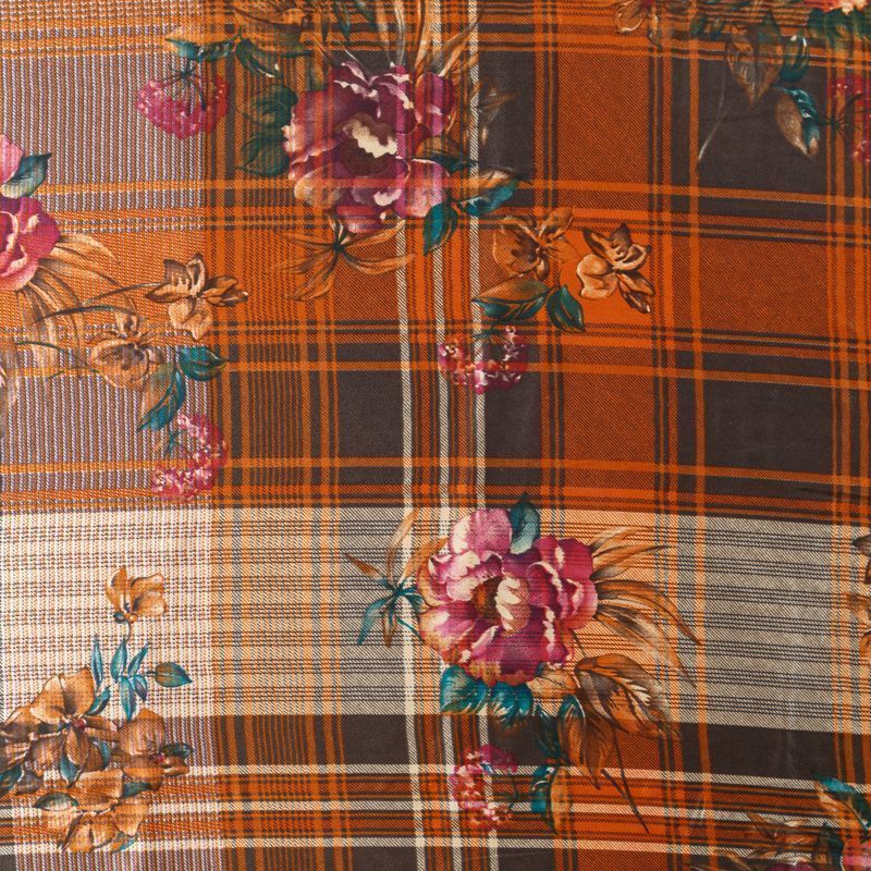 Шелк натуральный К156-78 рыже-коричневый принтованный