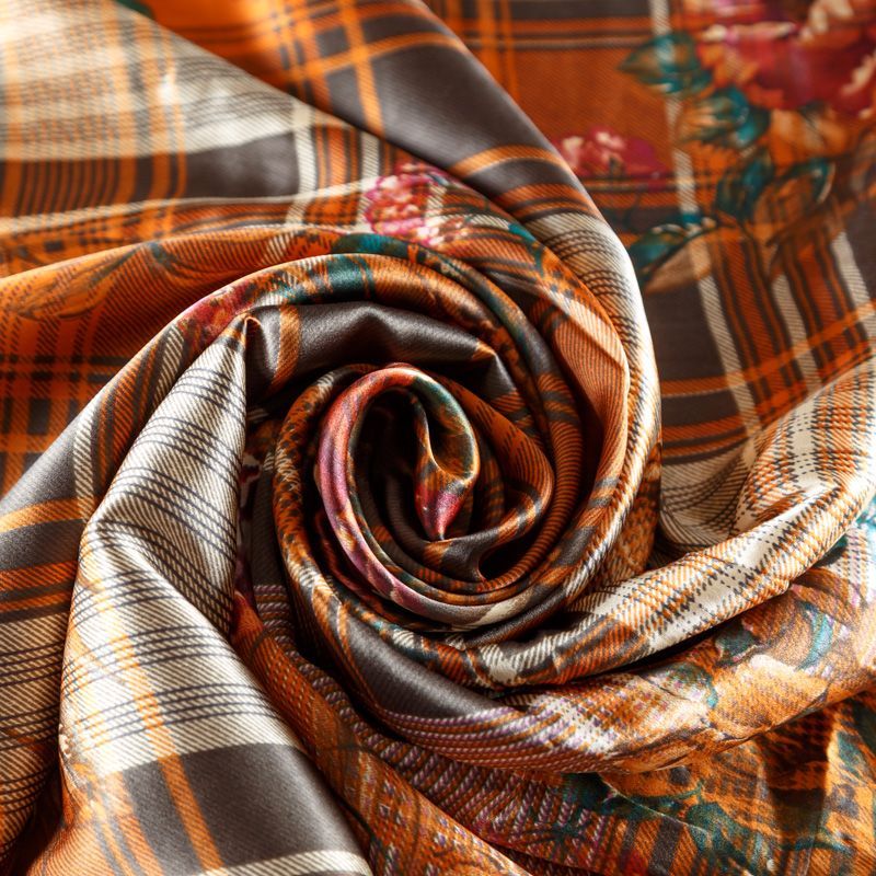 Шелк натуральный К156-78 рыже-коричневый принтованный в Салехарде