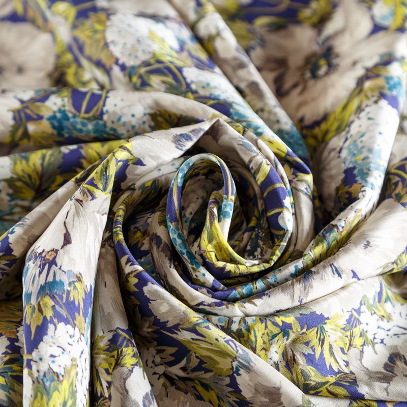 Шелк натуральный К15-013 синий принтованный в Салехарде