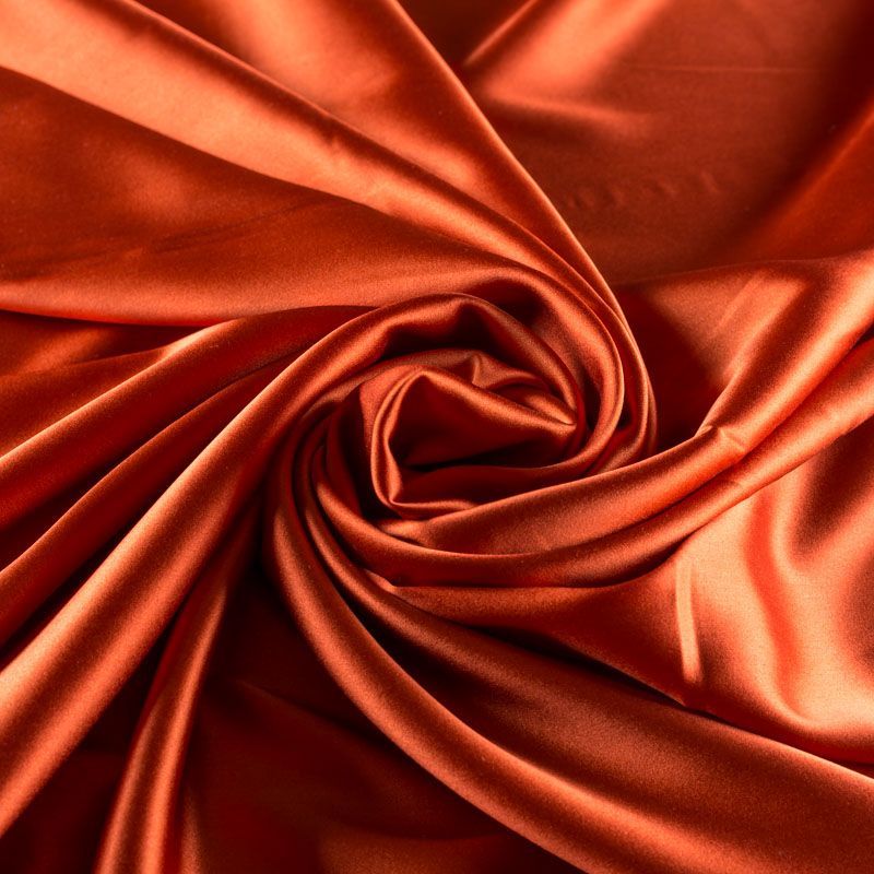 Блузочно-плательный атласный шелк с эластаном терракотового цвета. Невесомая гладкая ткань приятно прилегает к телу, дарит ощущение прохлады и нежно струится. Небольшой процент эластана делает материал упругим и растяжимым. Ткань не просвечивает, идеально подойдет для платья, блузки, рубашки, шелкового топа, юбки, актуальна для пижамы и комбинации.