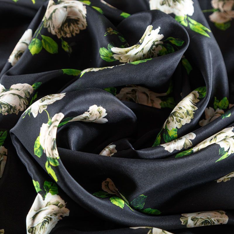 Шелк натуральный К24-006 черный принтованный в Салехарде