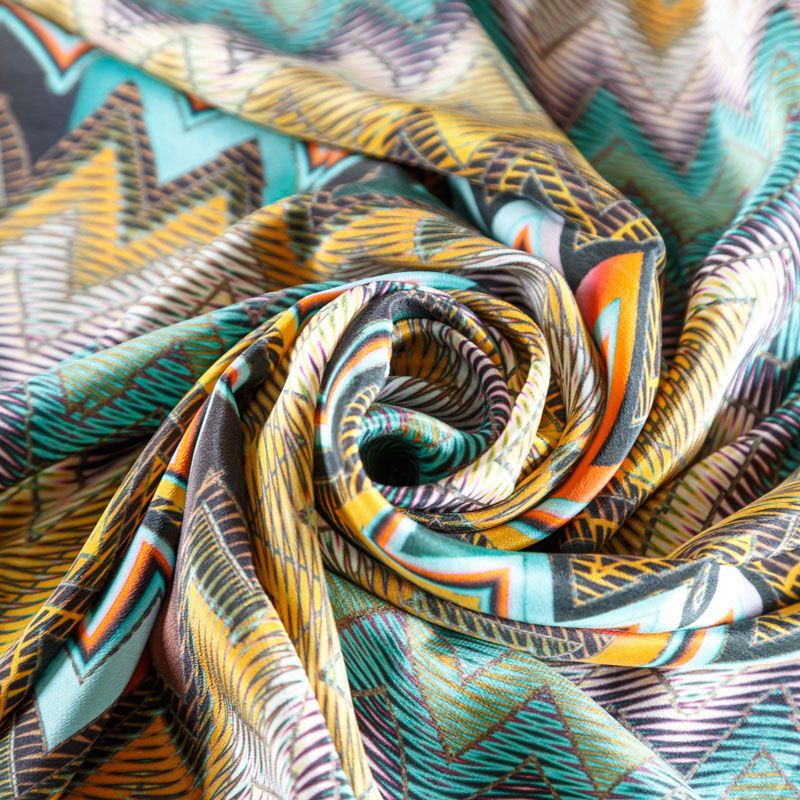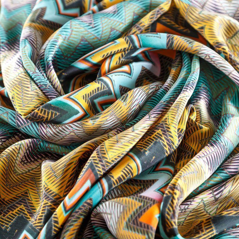 Шелк натуральный К24-015 бирюзовый принтованный в Салехарде