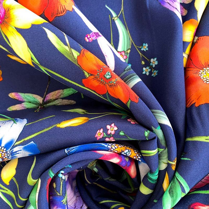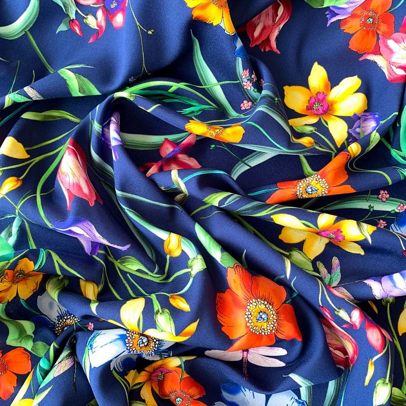 Шелк натуральный К32-155 темно-синий принтованный