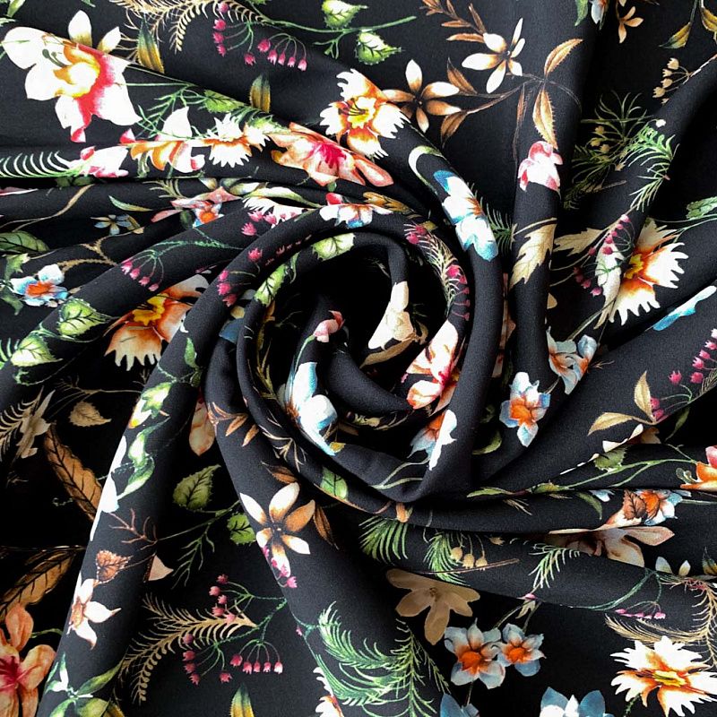 Шелк натуральный К32-158 черный принтованный в Салехарде