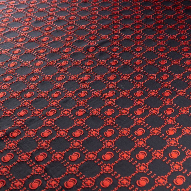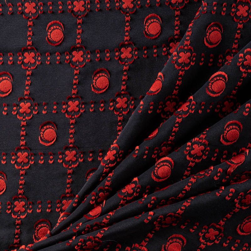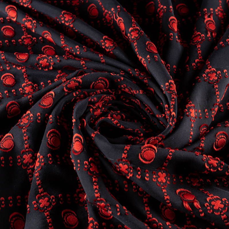 Шелк-жаккард, матовый, с набивным узором красного цвета, хорошо драпируется