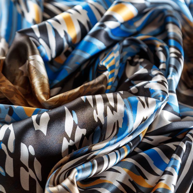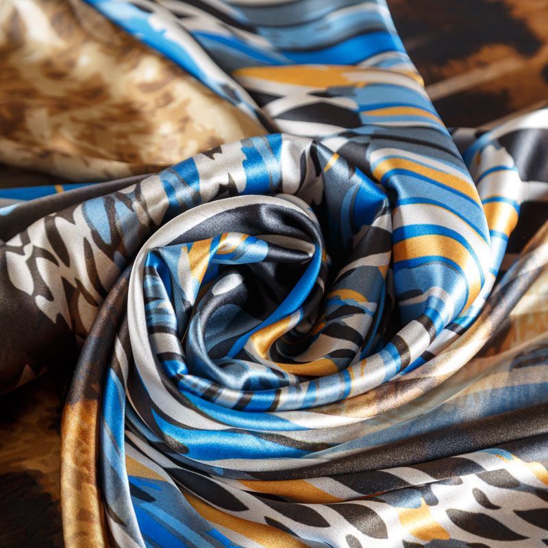Шелк натуральный К3-183 голубой принтованный в Салехарде