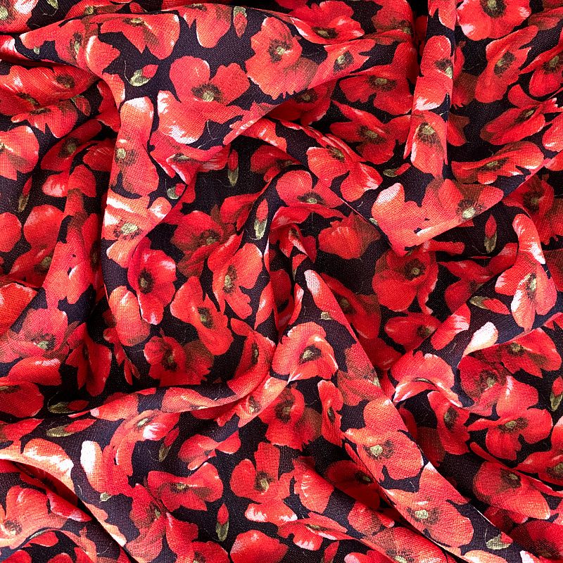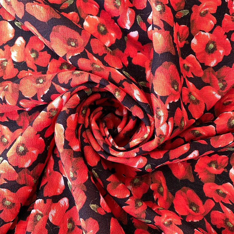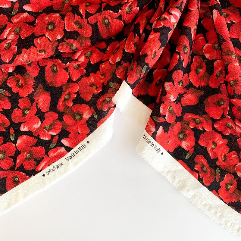 Тонкий, слегка рельефный итальянский шелк с добавлением тончайшей шерсти с ярким эффектным цветочным принтом. Ткань немного рыхлая, но не прозрачная. Хорошо драпируется струящимися складками. Идеально подойдет для платья, юбки, костюма для прохладного лета или теплой осени.