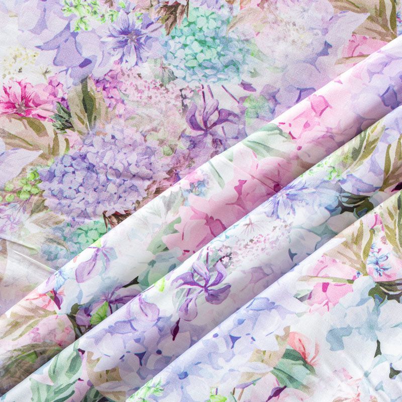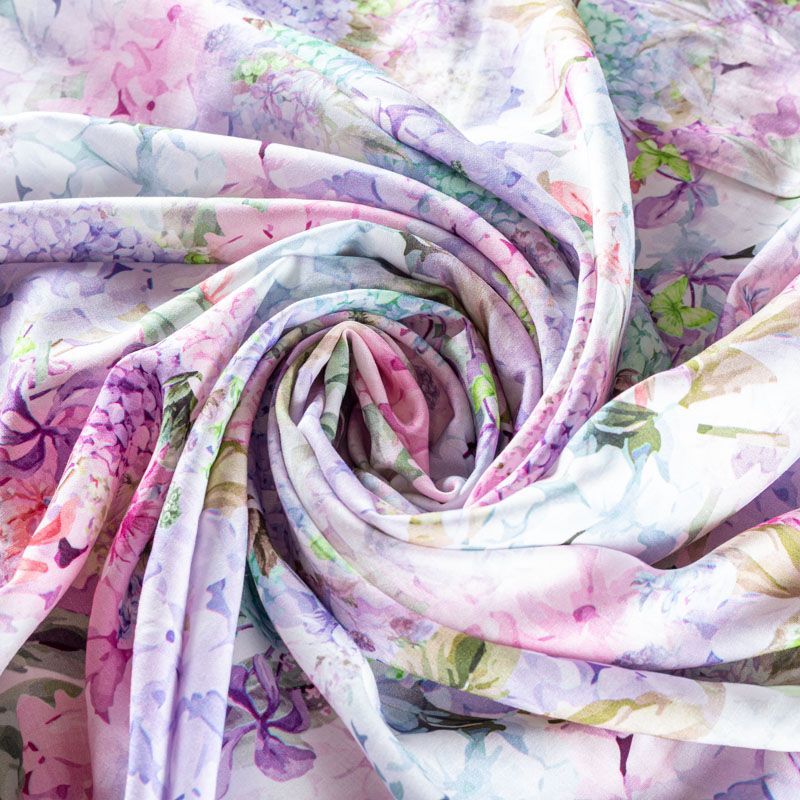 Плательно-блузочный штапель с добавлением шелка с нежным цветочным принтом в пастельных тонах. Ткань очень мягкая, нежная, пластичная, шелковистая на ощупь, хорошо драпируется, практичная. Особенно актуальна летом, шелк-штапель очень легкий, обволакивающий прохладой. Идеален для пошива летней детской одежды, сарафанов, платьев, юбок, блузок, домашней одежды: халатов, ночной пижамы.