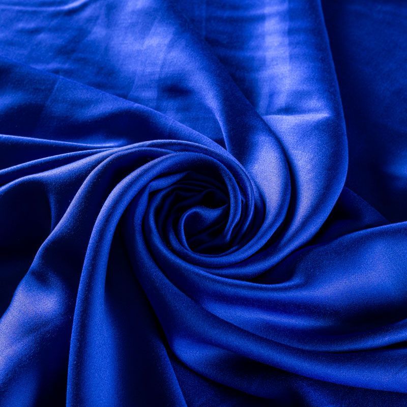 Плательно-блузочный штапель с добавлением шелка синего оттенка. Мягкий, нежный, пластичный, шелковистый на ощупь, хорошо драпируется, практичный. Особенно актуален летом, он очень легкий, обволакивающий прохладой. Идеален для пошива летней детской одежды, сарафанов, платьев, юбок, блузок, домашней одежды: халатов, ночной пижамы.